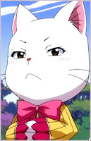 Biografia: Charuru é a amiga de Wendy, assim como Happy de Natsu, ela tem a mesma magia que Happy, sendo assim proporcionando-a poder criar asa e voar livremente, em várias ocasiões do anime e mangá ela transporta/carrega Wendy como Happy transporta Natsu, sendo um meio de locomoção. Charuru é uma gatinha marrenta e cheia de 9 horas, ao pé da letra, enjoada mesmo, Happy é caidinho por ela e se vê em ameaça quando Lily, outro gato que na verdade é uma pantera, chega na trama de Fairy Tail mais adiante, Charuru se preocupa demais com Wendy, porque ela usa magia de cura do dragão do céu, e isso exige muito de seu poder mágico. Com essa carinha fechada olhando de cima, Charuru é muito frágil e meiga, em uma certa parte do anime se vê que ela gosta de Happy, e gosta de ser protegida.