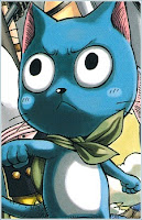 Biografia: Happy é um gato com algum poder mágico, que pode ser o motivo de sua capacidade de falar. Ele pode, temporariamente, fazer crescer asas nas costas e voar, e é capaz de transportar apenas uma pessoa desta forma. Happy aparentemente pode voar a uma velocidade incrível (que alcançou Eligor menos de uma hora para chegar ao trevo Happy pego ele em poucos segundos com Natsu). Este também é o único tipo de transporte que não faz Natsu ficar enjoado. Quando perguntado por que, Natsu ficou irritado e exclamou que Happy era um amigo, não um meio de transporte, ironicamente Natsu depois fica doente quando Gray dá-lhe uma carona nas costas quando ele está ferido. Ele está muito perto de Natsu e torna-se amigo de Lucy rapidamente. Os três formam uma equipe no início do mangá, Happy é um membro da Fairy Tail, e tem um selo de membro em suas costas. Também é desconhecido se Happy, apesar de ser um mago e um membro da Fairy Tail, pode usar a sua magia ofensiva ou não. Happy tem uma natureza muito alegre. mesmo quando enfrenta o perigo, ele mantém um sorriso. Junto com Lucy, ele é um dos membros e a mais sensatas de Fairy Tail e muitas vezes atua como a mediadora entre Natsu e Gray. Nome original de Happy ia ser Freyr, um deus nórdico. Mas Hiro Mashima sentiu que não se encaixava nele, então ele mudou o nome para Happy para caber ao personagem.
